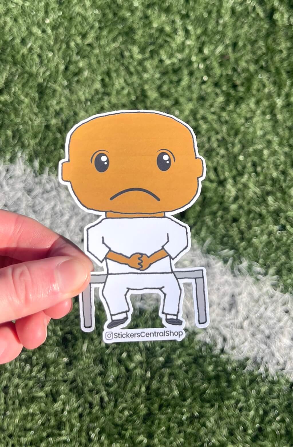 Our Benchwarmer Soccer Player Sticker captures the essence of enthusiasm for the game. Illustrated on the sticker is a soccer player, eagerly sitting on the bench with a concerned expression, awaiting to be substituted into the game. Eyes are fixated on the field, showcasing the passion to get on the playing field. The vibrant colors and expressive details convey the player's eagerness to contribute to the match, making it a delightful and relatable depiction for soccer enthusiasts of all ages.