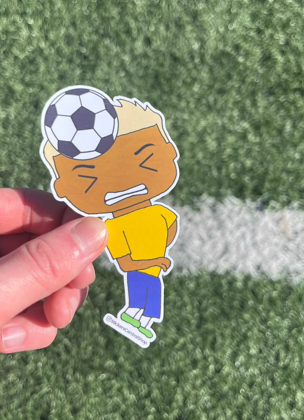 Our Brazil Header Soccer Player Sticker captures the electrifying moment of a player heading a soccer ball! Illustrated on the sticker is a soccer player, showing the essence of athleticism and determination playing the beautiful game. Eyes narrowed on impact, showcasing the player's focus on one of the exhilarating feats of the game. The vibrant colors and expressive details convey the player's passion to impact the match, making it a delightful and relatable depiction for soccer enthusiasts of all ages.