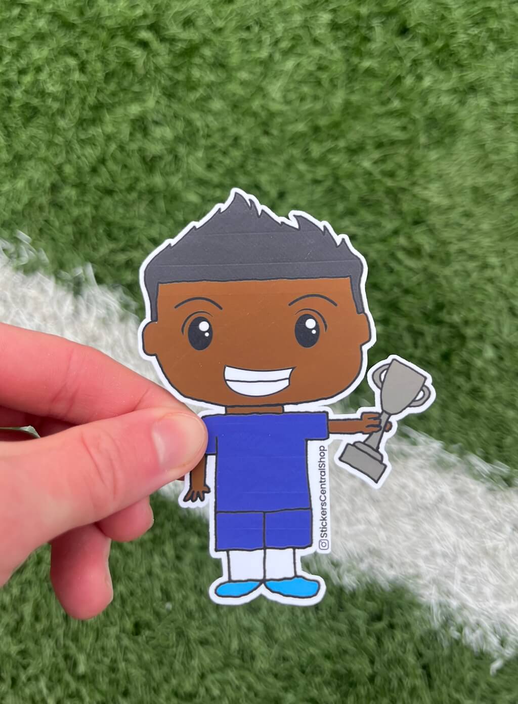Each sticker is expertly crafted by a sports graphic designer who specializes in kawaii soccer themes, meticulously hand-drawn, and then digitized to capture every joyful detail. The sticker is colored in vibrant Royal Blue and measures approximately 4" tall x 3" wide. These stickers are printed on premium quality vinyl matte white waterproof sticker paper. Stickers are individually wrapped and sealed with a logo label for added shipping protection. Our minimal packaging footprint supports environmental sustainability.