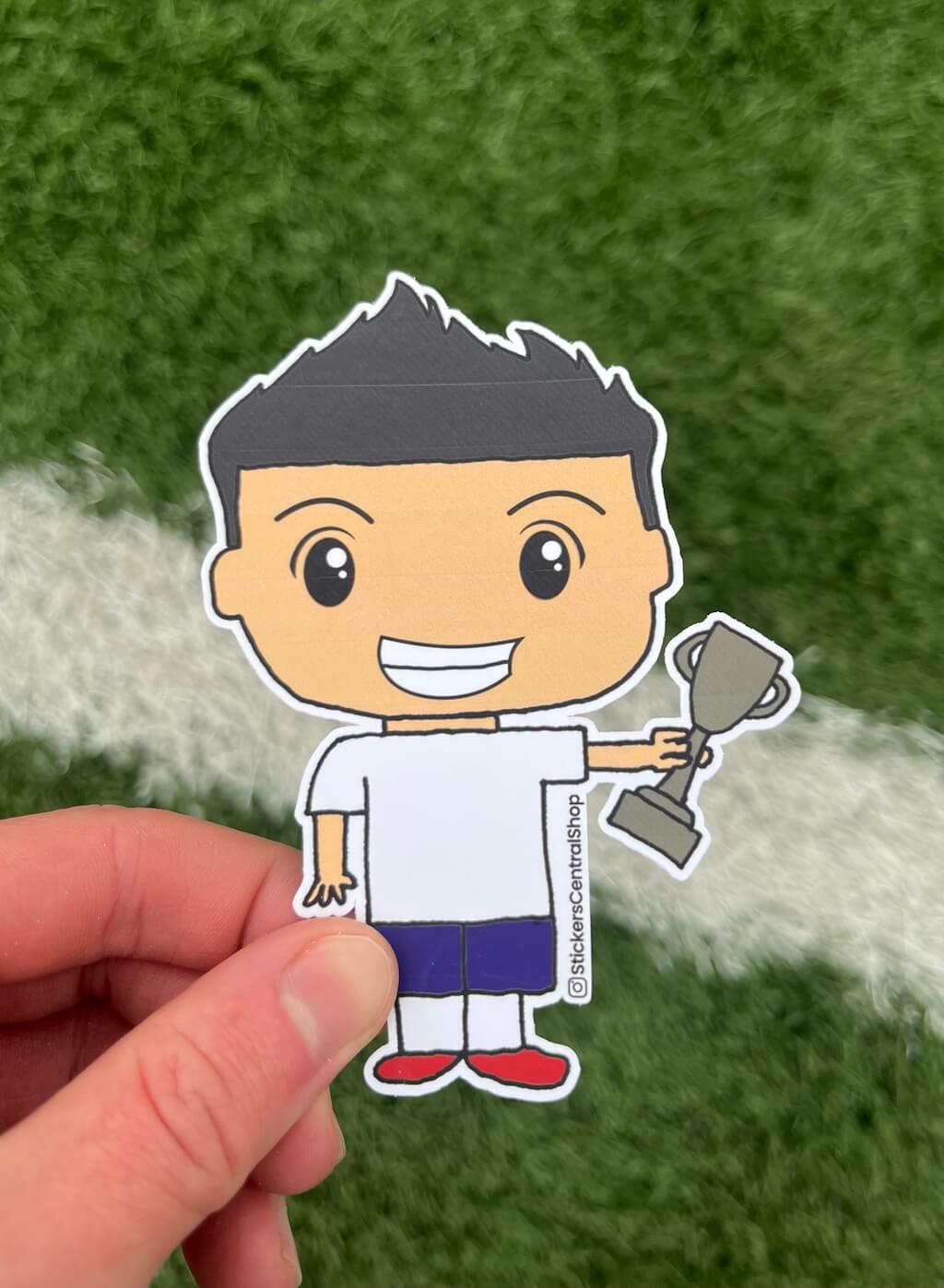 Our Tottenham Hotspur Champion Soccer Player Sticker captures the moment a soccer player proudly showcases a championship trophy - the ultimate symbol of victory and glory on the field!