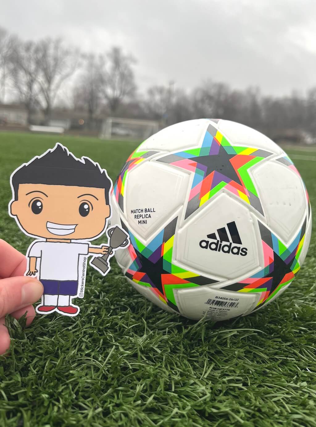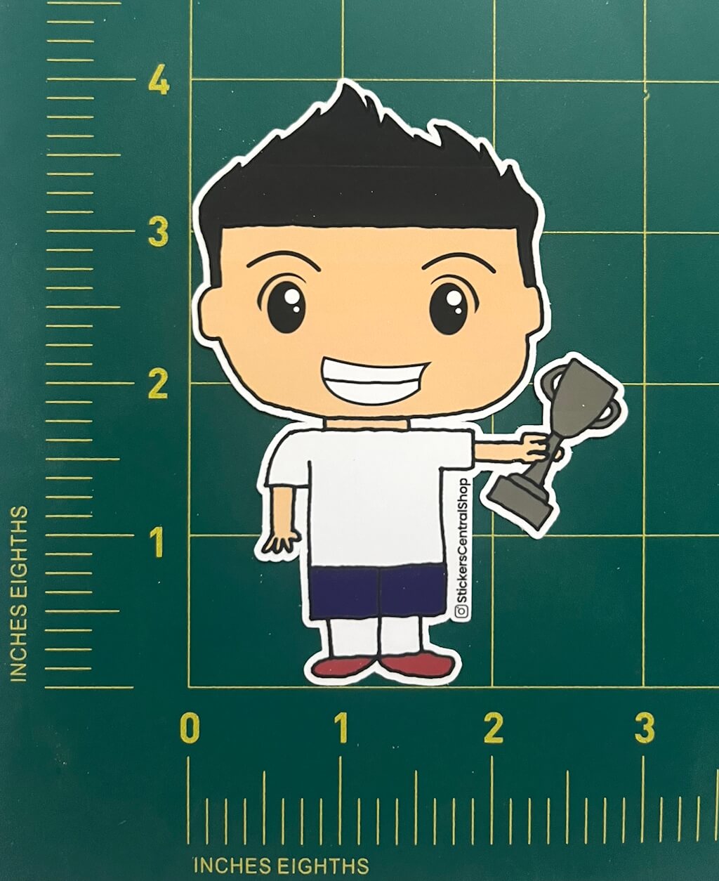 Hand drawn and digitized sticker design. Each sticker has the soccer player in vibrant WHITE AND BLUE uniform and measures approximately 4" tall x 3" wide. These stickers are printed on premium quality vinyl matte white waterproof sticker paper. Stickers are individually wrapped and sealed with a logo label for added shipping protection. Our minimal packaging footprint supports environmental sustainability.